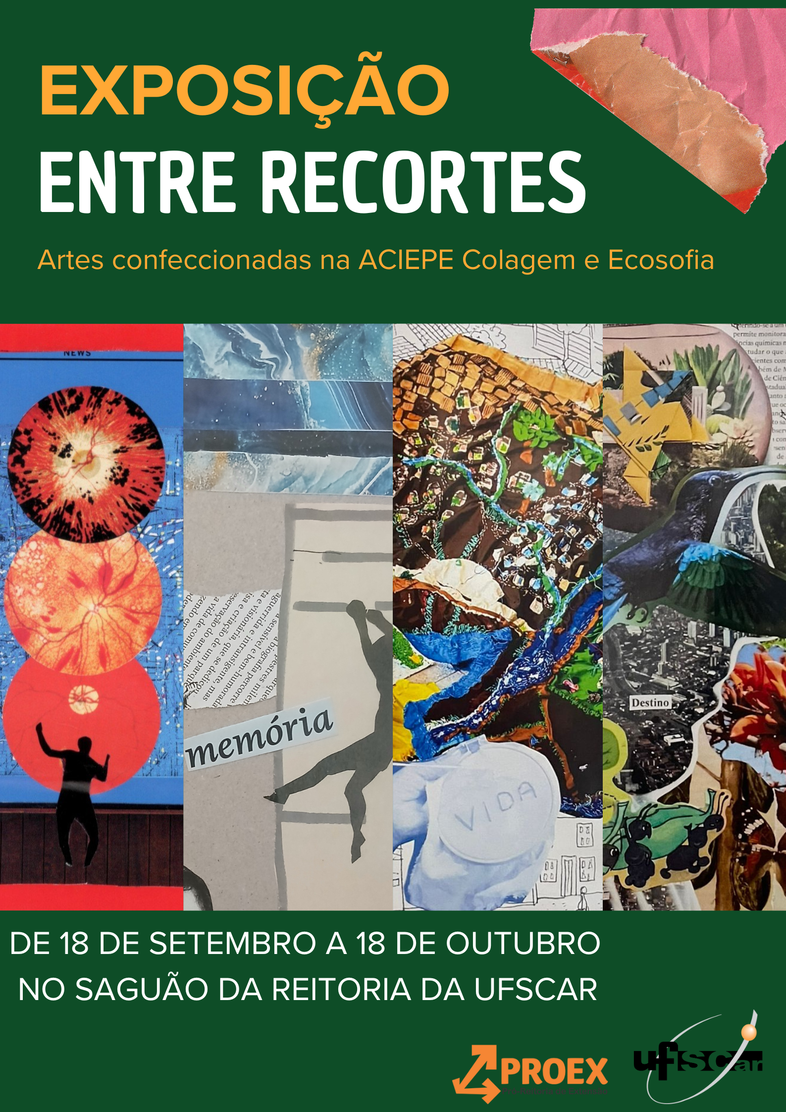 A exposição "Entre Recortes" conta com obras produzidas pelos participantes da Aciepe "Colagem e Ecosofia", coordenada pela professora Gabriella Pizzolante.